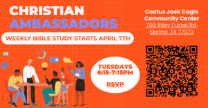 Tue. Apr 7th. – Tue. May 26th, 6:00pm-7:15pmPlace: Cactus Jack Cagle Community Center709 Riley Fuzzel Rd, Spring, Tx. 77373