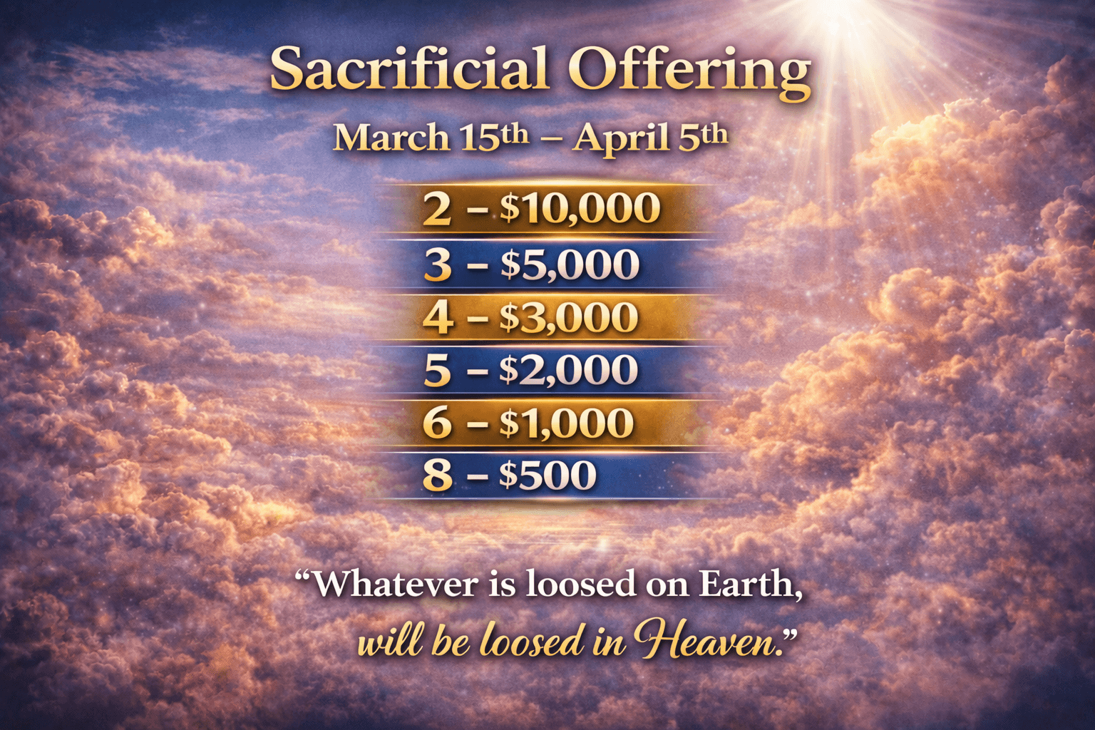 (Mar 15th – Apr 5th) – Sacrificial Offerings